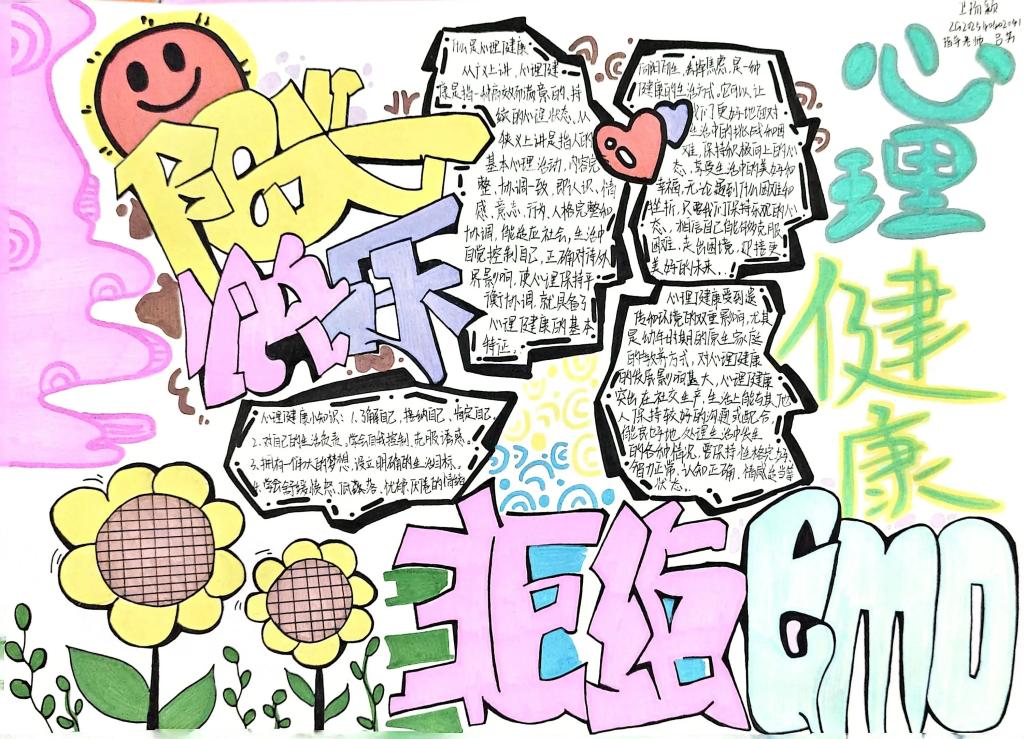 此次心理手抄报大赛,不仅为同学们提供了展示自我创意的平台,更让心理健康知识以生动有趣的形式深入人心。希望全体同学能以此次大赛为契机,多关注自身与他人的心理健康,用积极乐观的心态拥抱生活。学校也将持续开展丰富多样的心理健康教育活动,为同学们的健康成长保驾护航。为进一步加强校园心理健康教育,引导学生关注自我心理成长,营造积极健康的校园氛围,我校近期举办了“阳光心灵,与爱同行”主题心理手抄报大赛。活动自启动以来,得到了全校各班级的积极响应,同学们踊跃参与,用画笔勾勒心声,用色彩传递温暖。